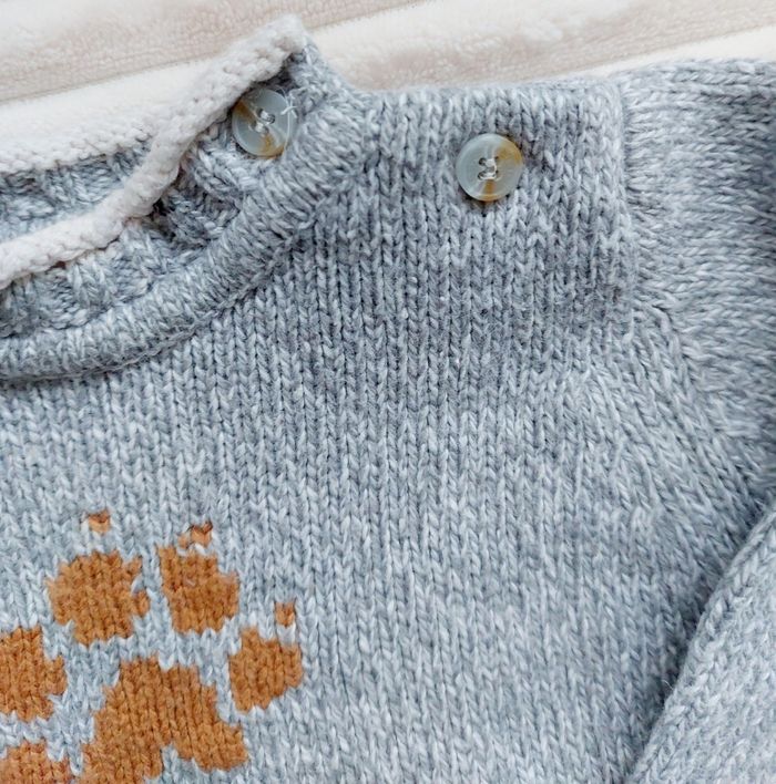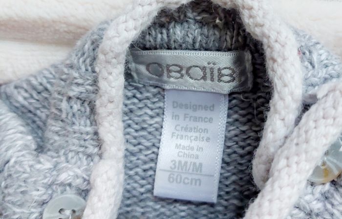 Pull, obaïbi 3 mois, gris clair 60% coton, 30% poliamide/nylon, 10% laine Très bon état 2€