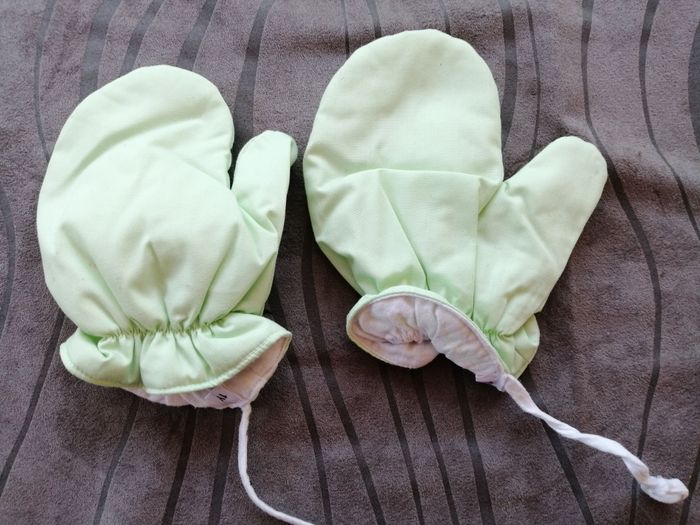 Moufles qui s'attachent aux manches.Epais, matelassé, très beau