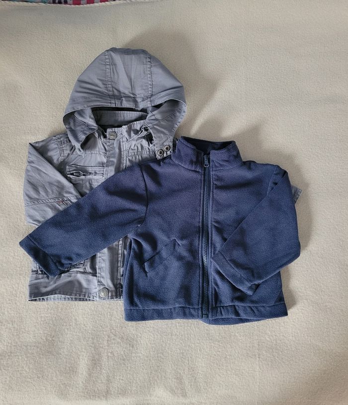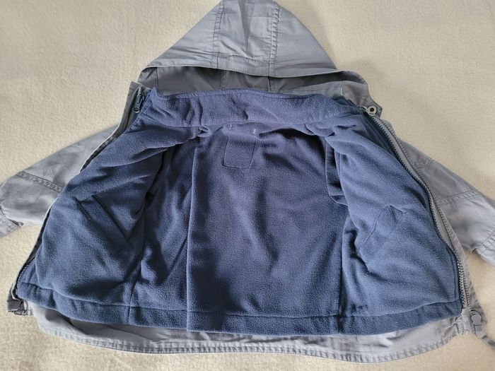 Veste 2 en 1 orchestra 2 ans 92 cm Veste avec gilet polaire à l'intérieur amovible Grise, gilet bleu Très bon état Pratique pour partir le matin avec une veste chaude et se découvrir si besoin l'après-midi