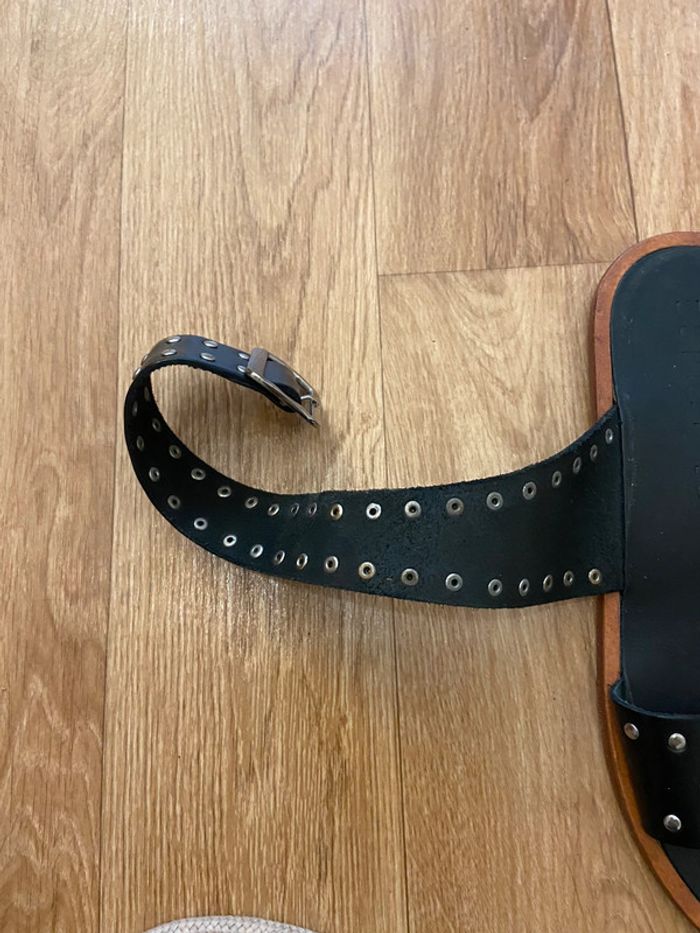 Sandales en cuir cloutées Noir et marron Attaché à la cheville 38 Porté 2 fois