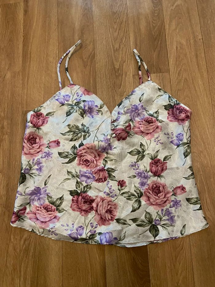 Caraco de nuit a fleurs M Marque Lingerie Cacique Polyester