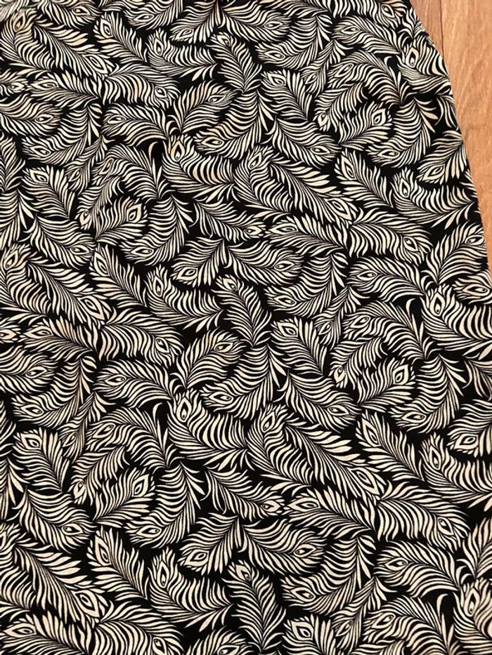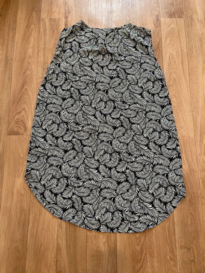 Chemisier long ample Sans manches Encolure V Imprimé feuille Noir et crème 100% polyester