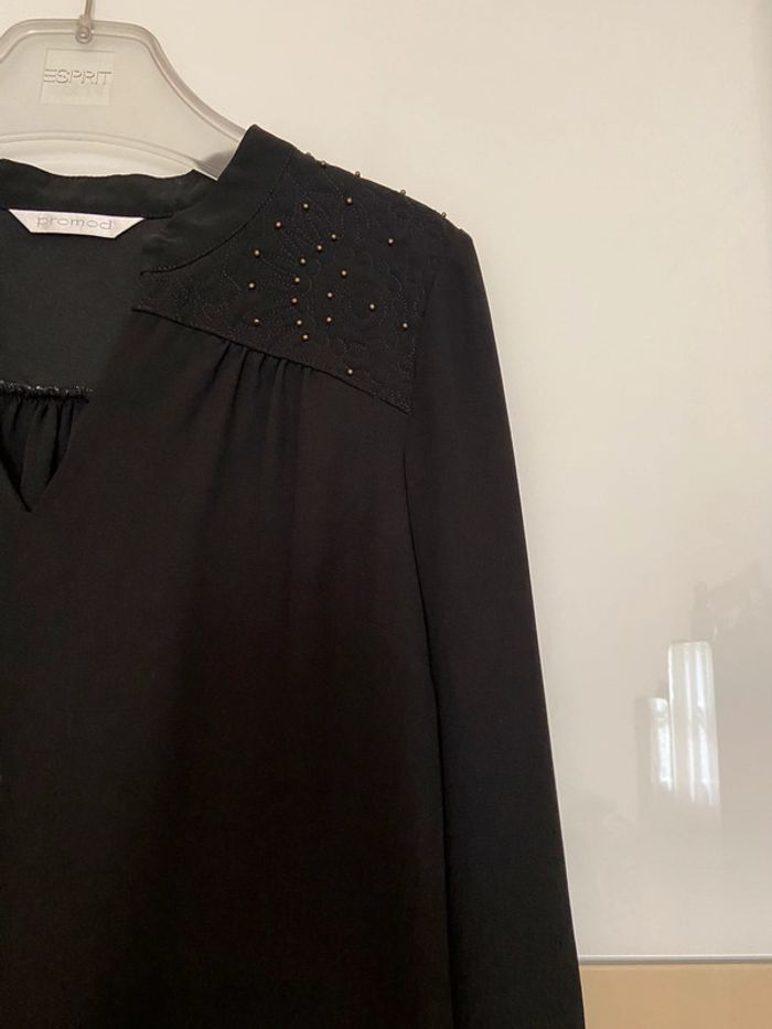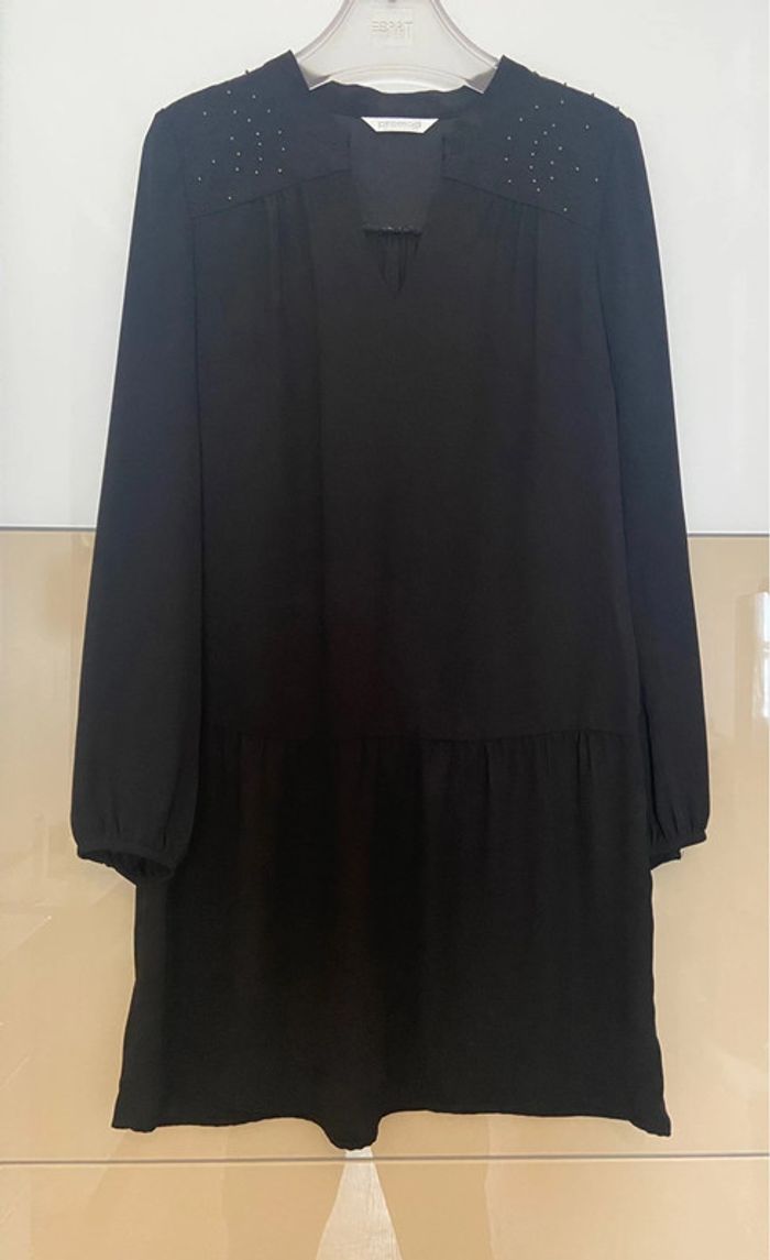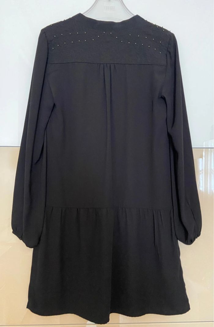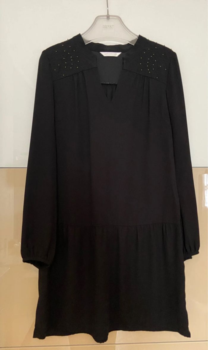 Robe noire à manches bouffantes Perles dorées sur le haut de la robe Polyester M