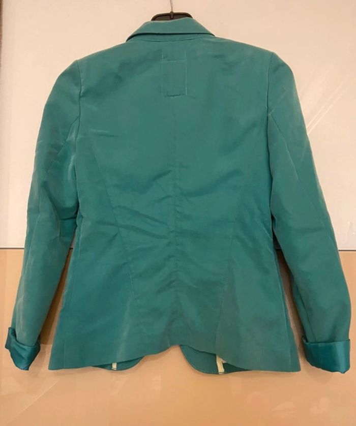 veste cintrée vert d’eau 38 Casual Matière douce et agréable Matière extérieure 72% Modal 28% polyester Doublure 100% coton Deux poches à l’avant Fermeture avec un crochet Deux épaulettes Neuve