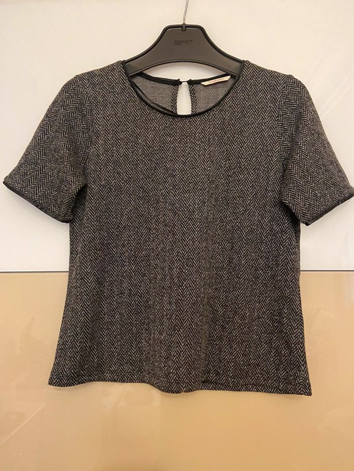 Je vends ce haut chiné gris M Camaïeu Matière très agréable Couture manche et encolure en similicuir