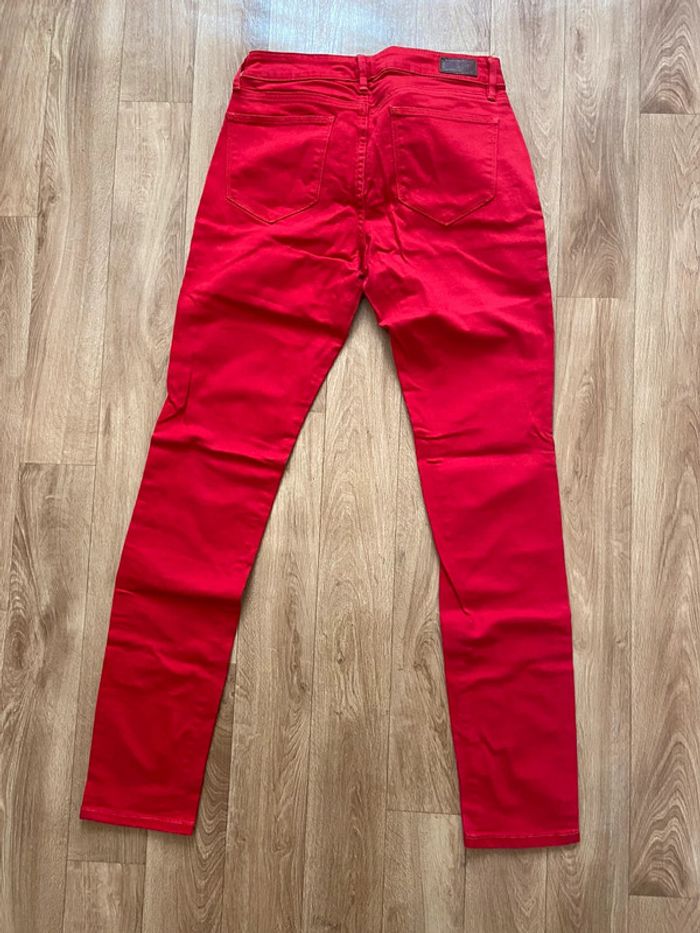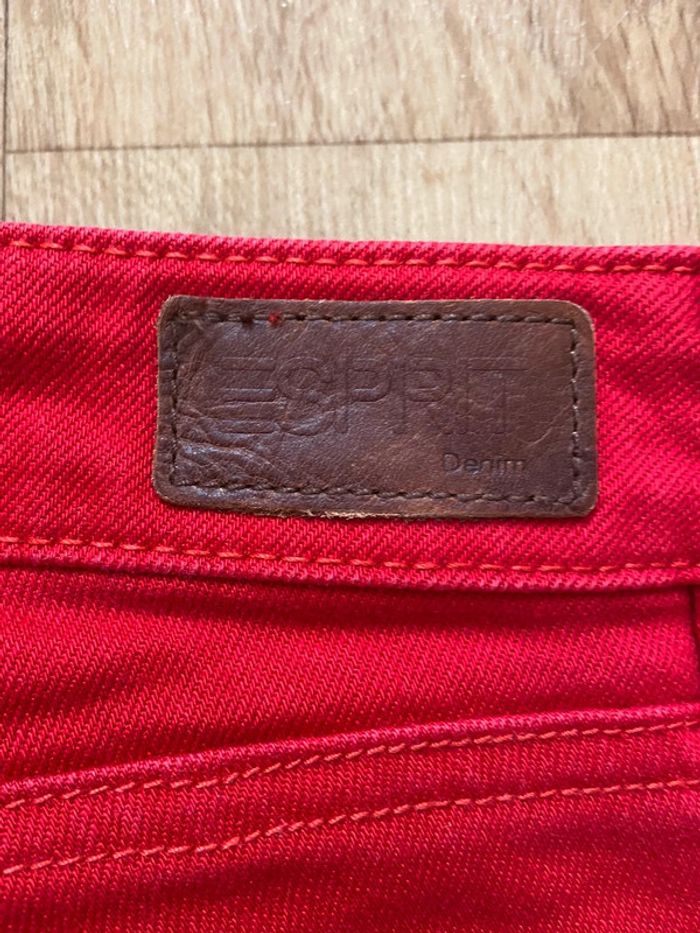 je vends ce jean rouge skinny médium rise de la marque esprit très confort porté une à deux fois taille 28 longueur 32 99% coton 1% elastane