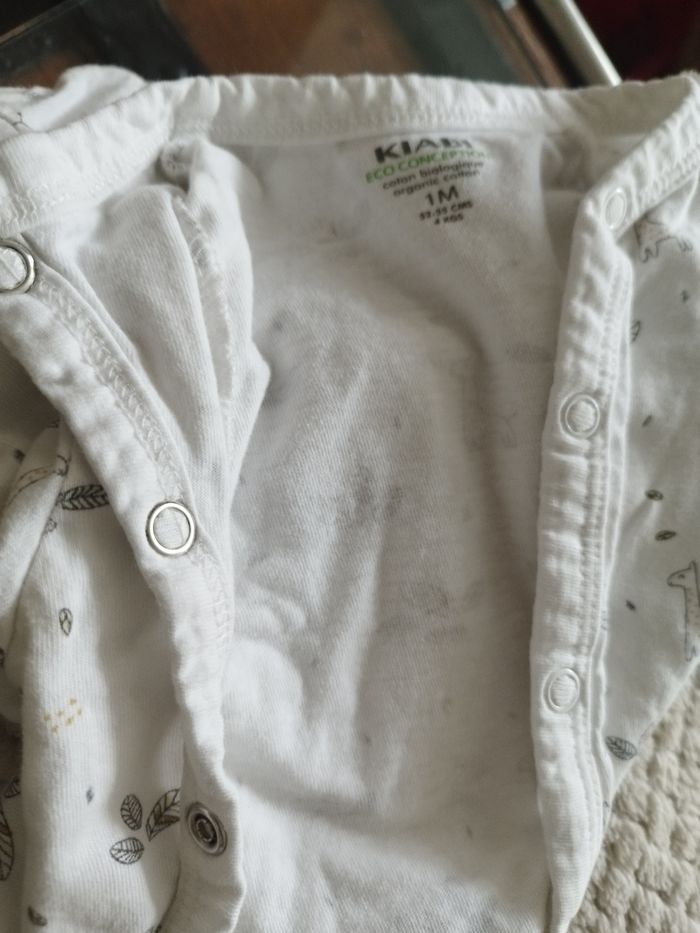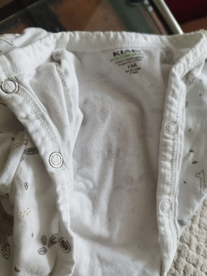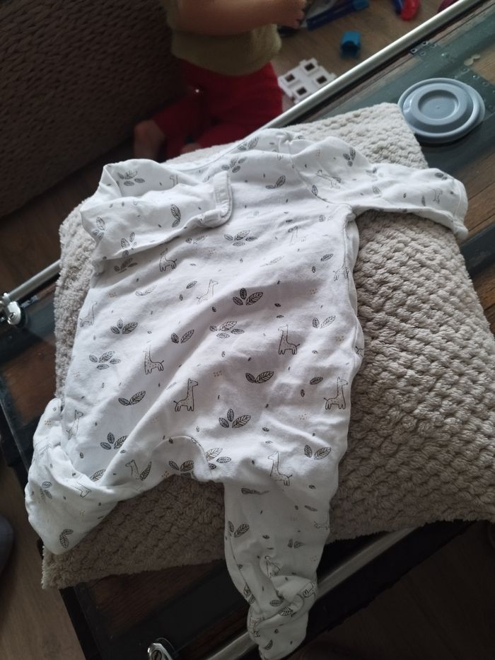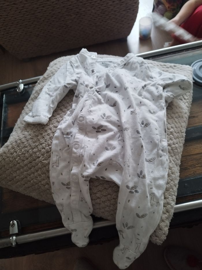 • grenouillère • fermeture pression • blanche à motifs • fine • pour bébé • 1 mois • comme neuve