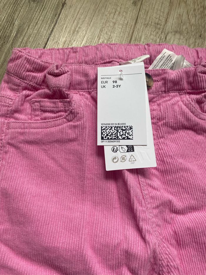 Pantalon jean velours côtelé rose H&m 2/3 ans - photo numéro 2