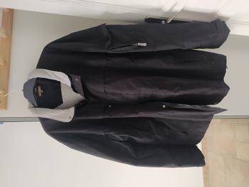 Veste imperméable avec capuche et bande réfléchissantes Neuf avec étiquette. Tache sur le devant (photo numero 2) et poussiereux