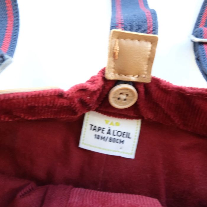 Pantalon en velours côtelé, coloris bordeaux. Taille ajustable. Bretelles assorties. Excellent état ✨vous souhaitez créer un lot, contactez-moi ! #18moisencorejoli