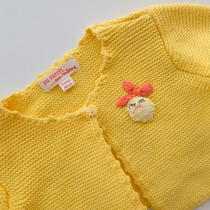 Boléro, gilet en maille point mousse. Coloris jaune. Très mignon. Excellent état ✨vous souhaitez créer un lot contactez-moi ! #6moisencorejoli