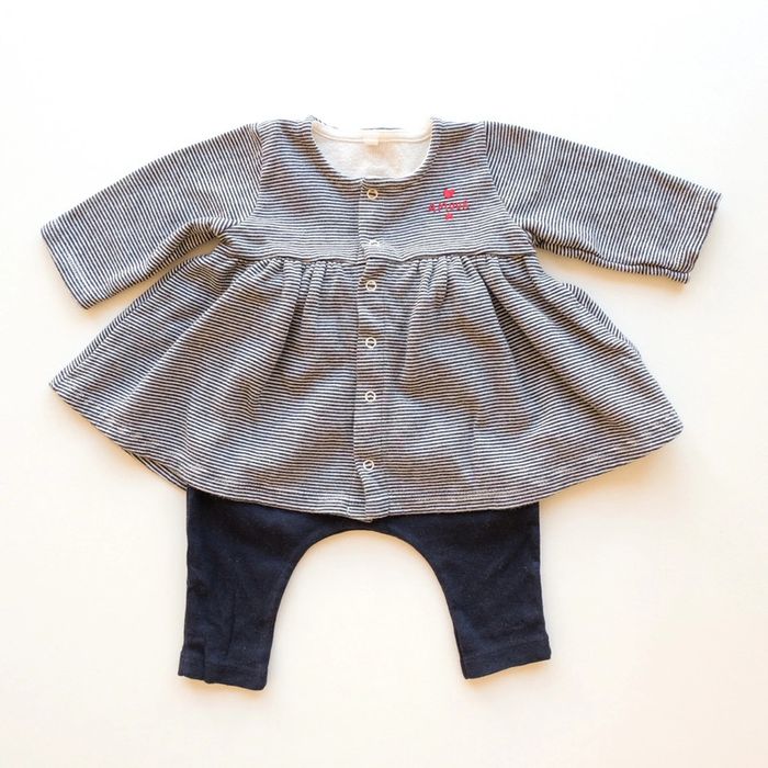 Ensemble robe marnière en tubique + legging en coton, esprit sarouel, coloris bleu marine uni. Confortable pour bébé. Excellent état ✨vous souhaitez créer un lot, contactez-moi ! #3moisencorejoli