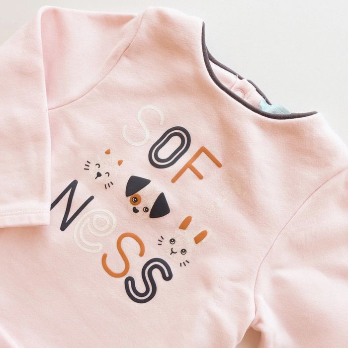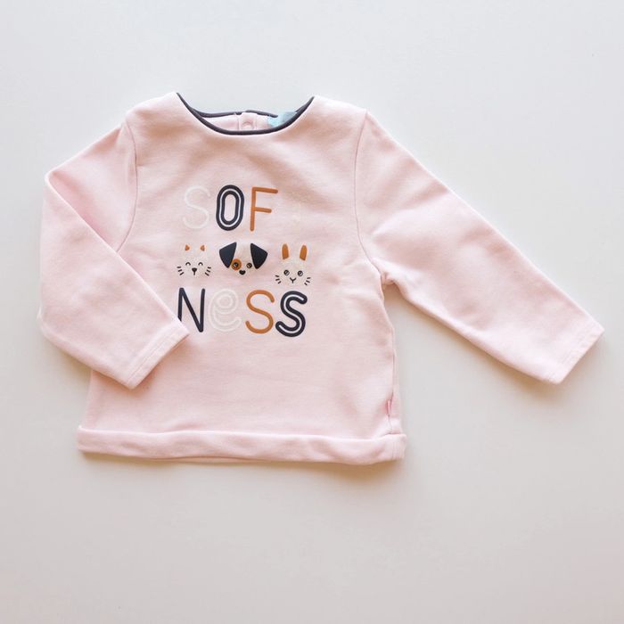 Sweat rose pâle. Inscription "Softness". Tout mignon. Excellent état ✨vous souhaitez créer un lot contactez-moi ! #18moisencorejoli