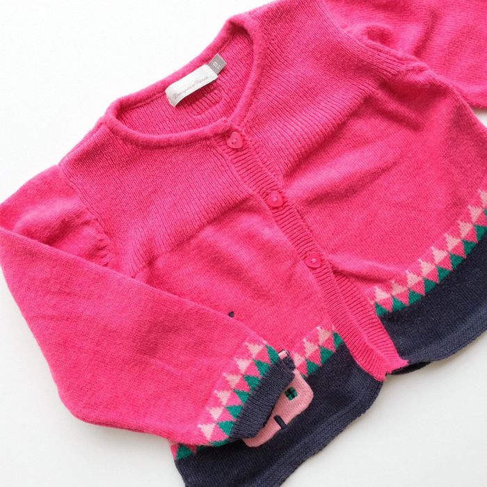 Gilet à manches longues coloris rose et gris. Boutonnière au devant, boutons roses en forme de coeurs. Excellent état ✨vous souhaitez créer un lot, contactez-moi ! #9moisencorejoli