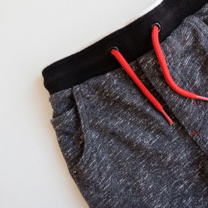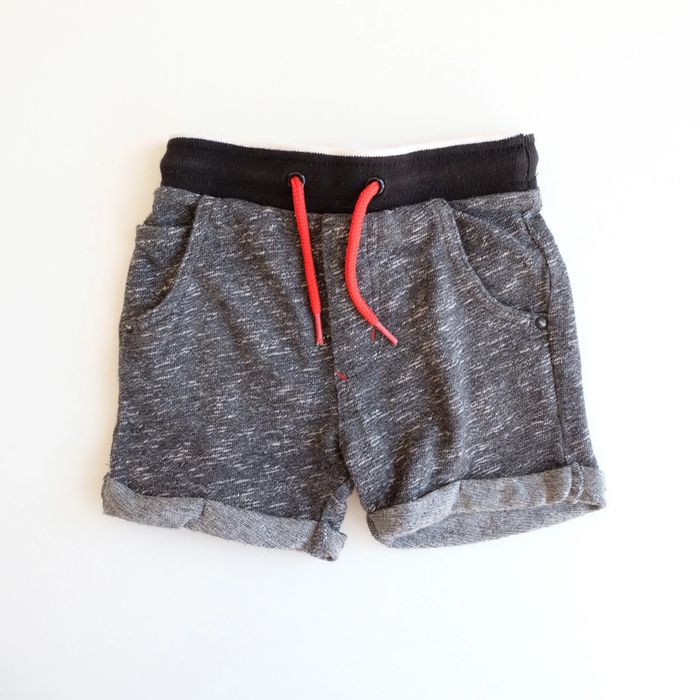 Short coloris gris foncé. Bande élastique à la taille + cordon de serrage rouge. Excellent état ✨vous souhaitez créer un lot, contactez-moi ! #12moisencorejoli