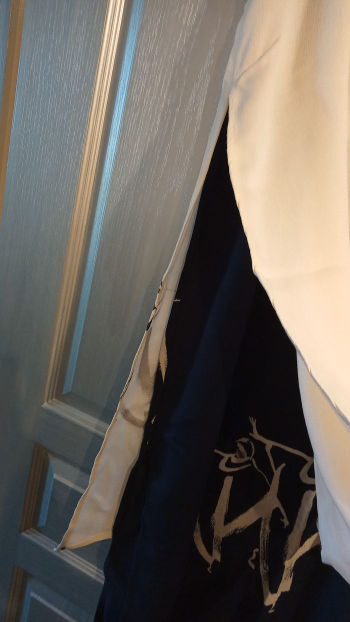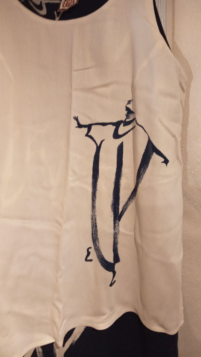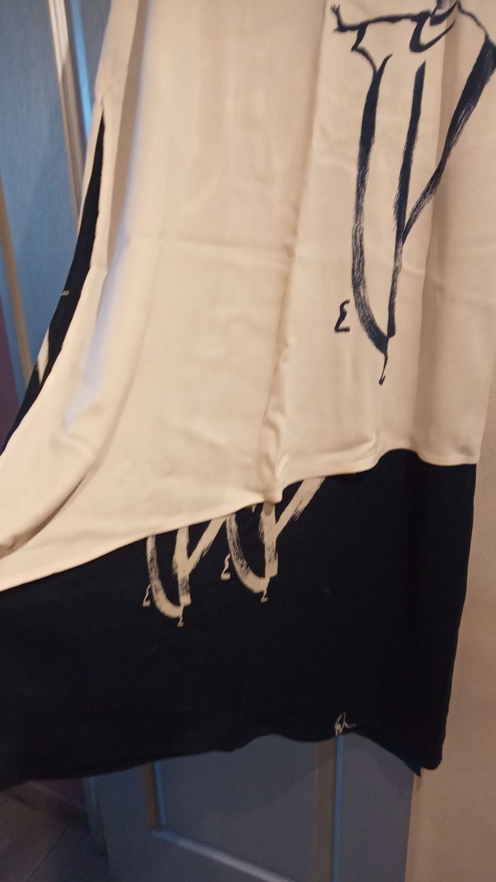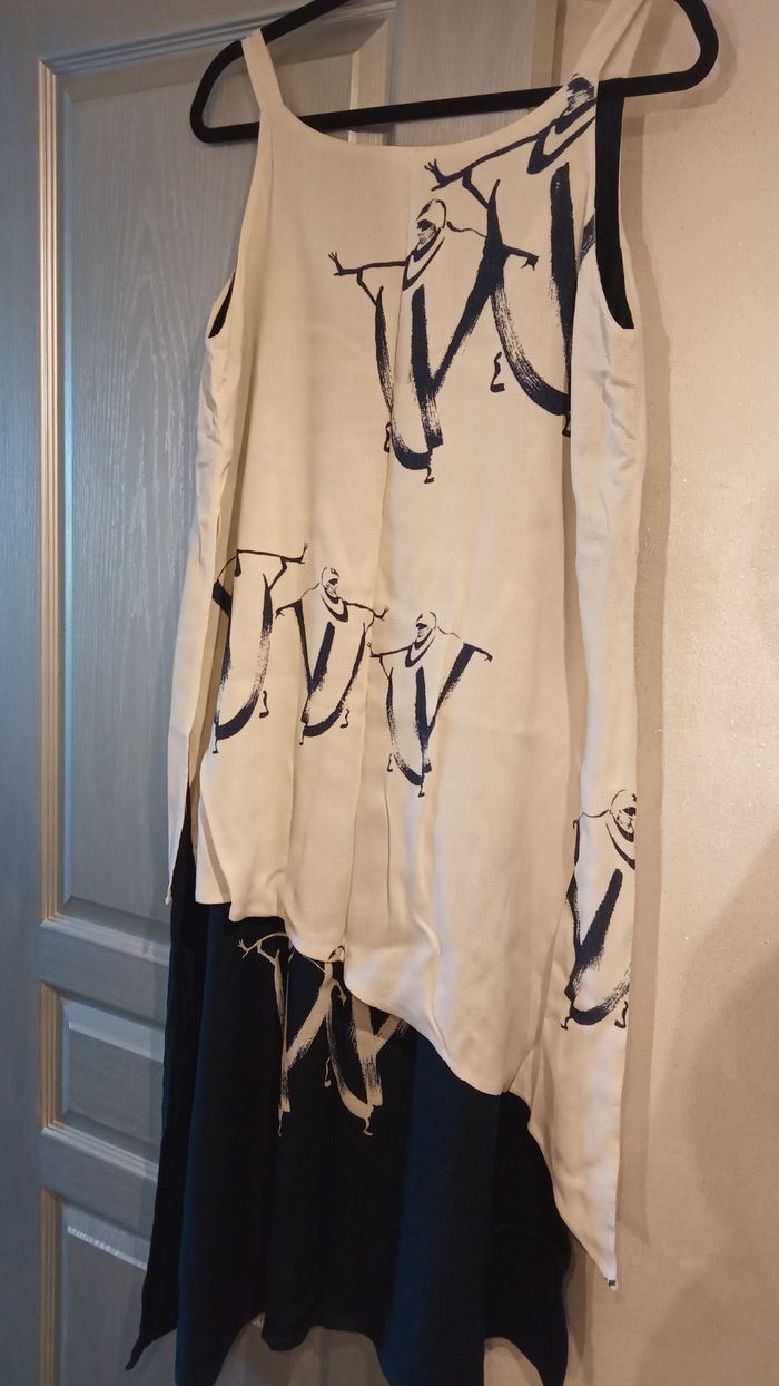 Jolie ROBE Taille L "Tera Bora" ROBE élégante, raffinée, tendance, dans l'air du temps Couleur: Bleu marine et Blanc cassé avec motifs Coupe élégante avec forme asymétrique et effet 2 en 1 sans manches Fendue de chaque côté Dimensions: Longueur 103cm - aisselles à aisselles 52cm Matière: 100% Rayon ROBE en bon état (à préciser: le tissu est abîmé à quelques endroits, voir les dernières photos)