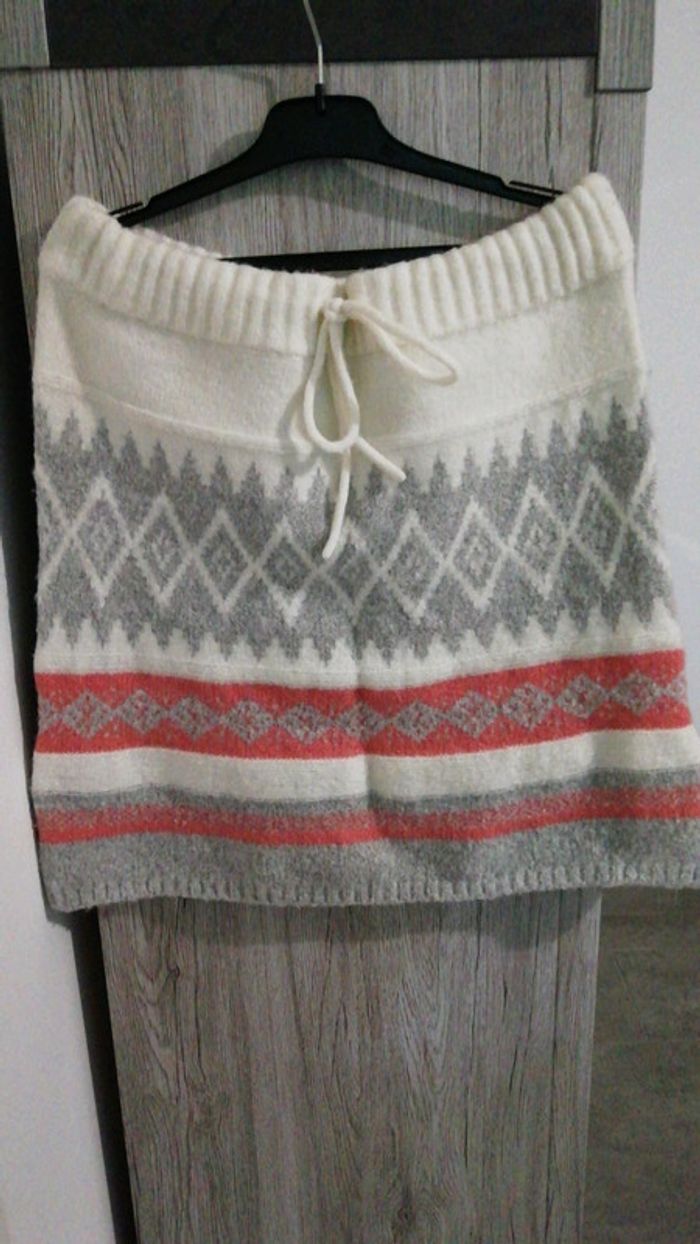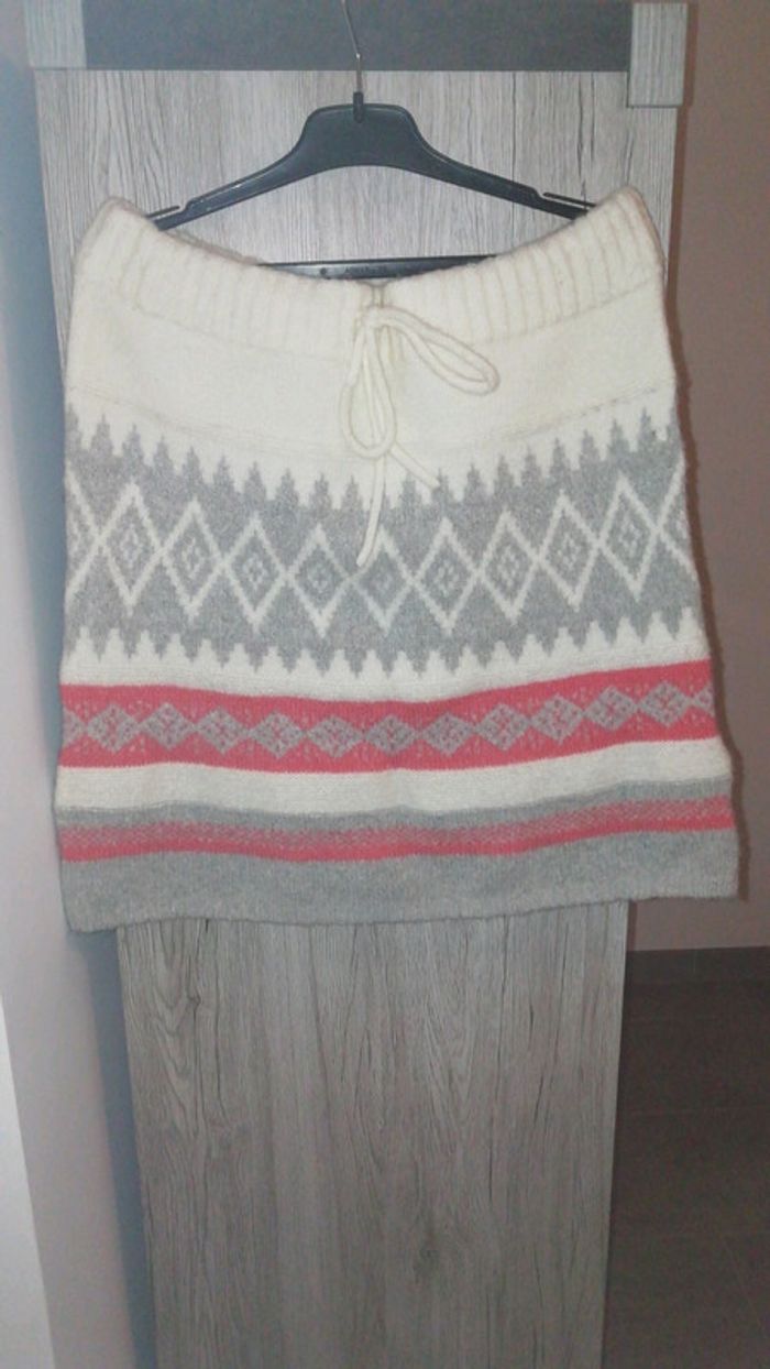 Magnifique jupe en laine acrylique nylon elasthane épaisse taille avec cordon. Écru gris et rose.