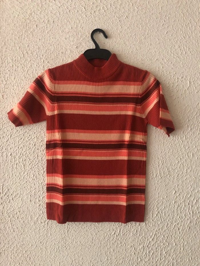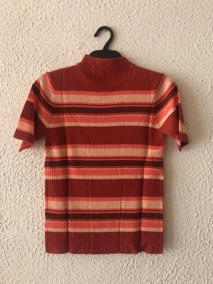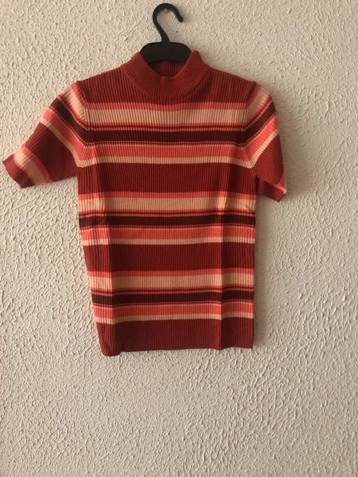 Col montant  Manches courtes  Base droite Maille côtelée naturellement douce chaude et extensible Long. 63 cm env. Maille côtelée 100% acrylique  Coloris : corail Taille : 42/44 Prix : 14€ Réf :à.aa +1 #sisterkayafemmeT42 #sisterkayafemmeT44