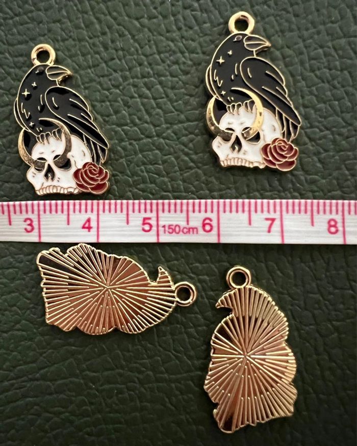 Pendentifs/breloques dorées « corbeau et crâne « . Neuves. Envoi rapide et soigné, réduction automatique dès 2 articles sélectionnés dans mon dressing. Mes autres ventes ici: #diversugolola #breloques #pendentifs #diy #diyjewelry #corbeau #halloween