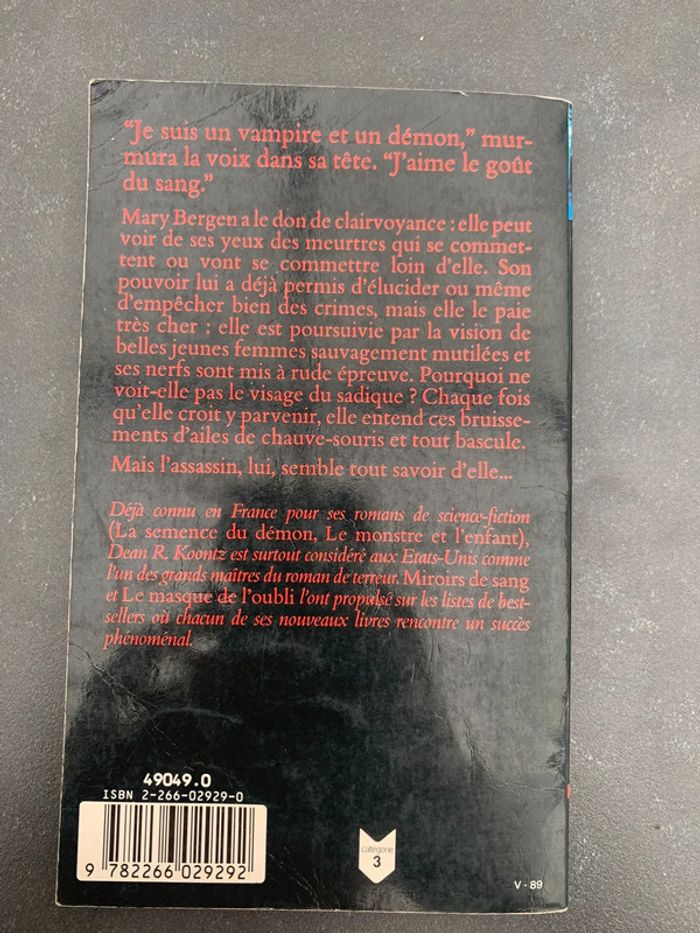 Livre de Dean R. koontz « Miroirs de sang », taille pocket. En bon état mais ⚠️ a été lu par plusieurs personnes, la couverture est légèrement abîmée (voir les photos). Envoi rapide et soigné, réduction automatique dès 2 articles sélectionnés. Tous mes livres ici: #livresugolola #livres #deankoontz #pocketterreur
