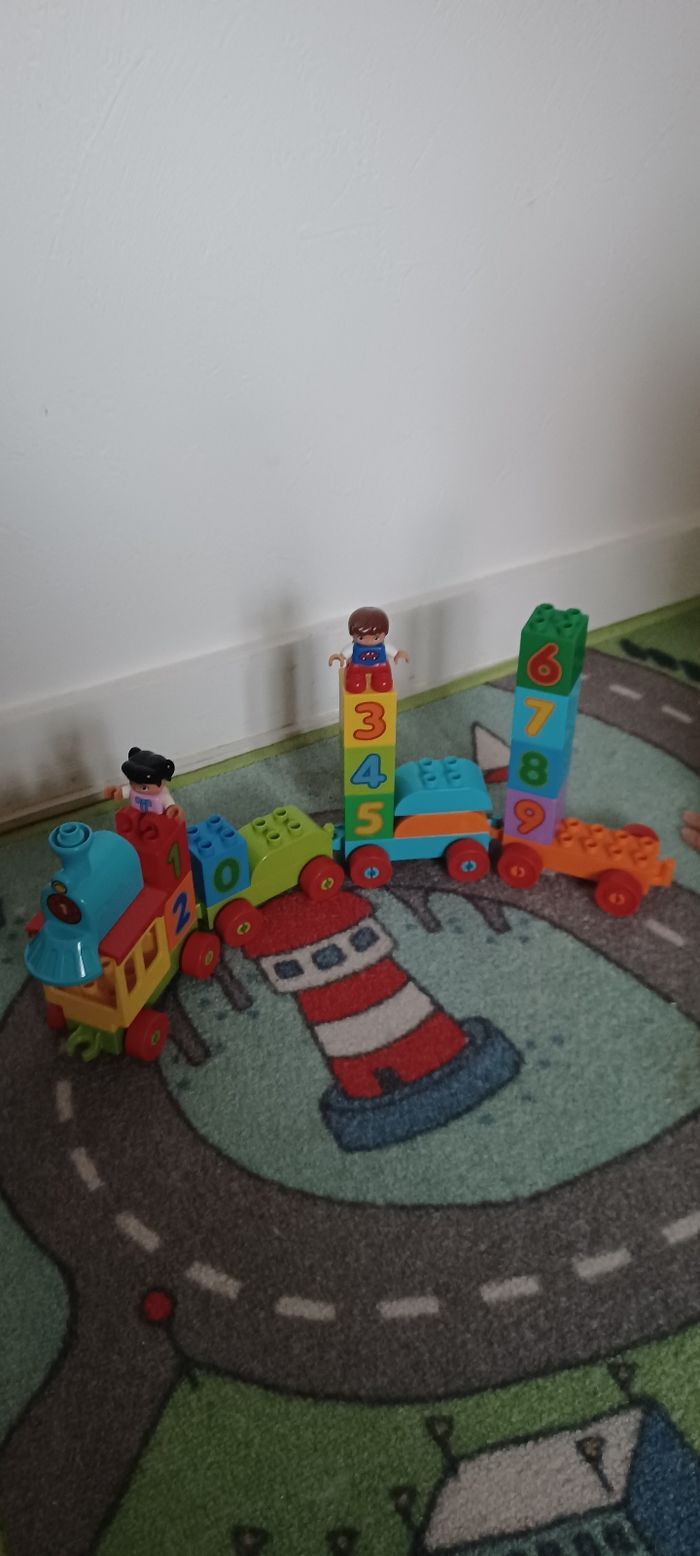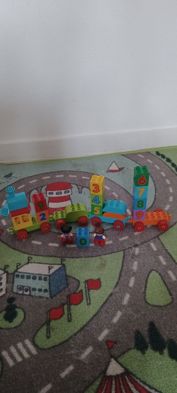 Train duplo type lego très amusant, permettant d'apprendre les chiffres et les couleurs.