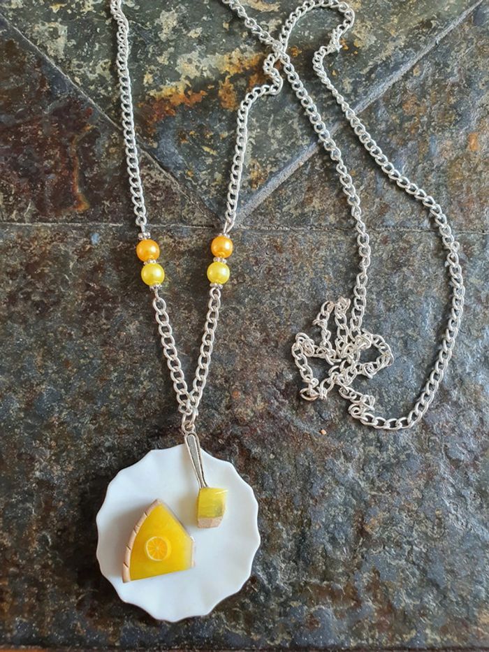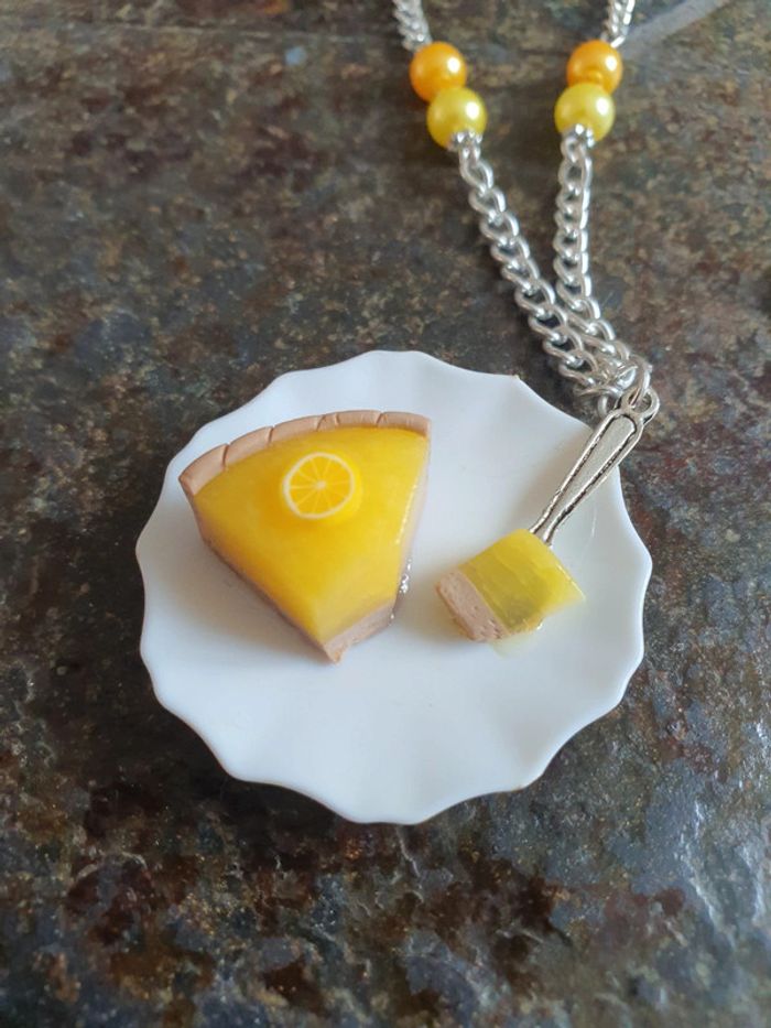 Collier métal argenté tarte au citron 🍋 - photo numéro 1