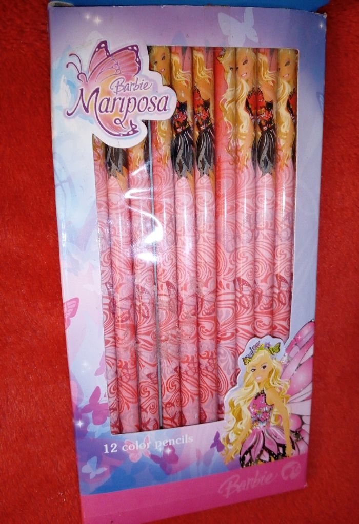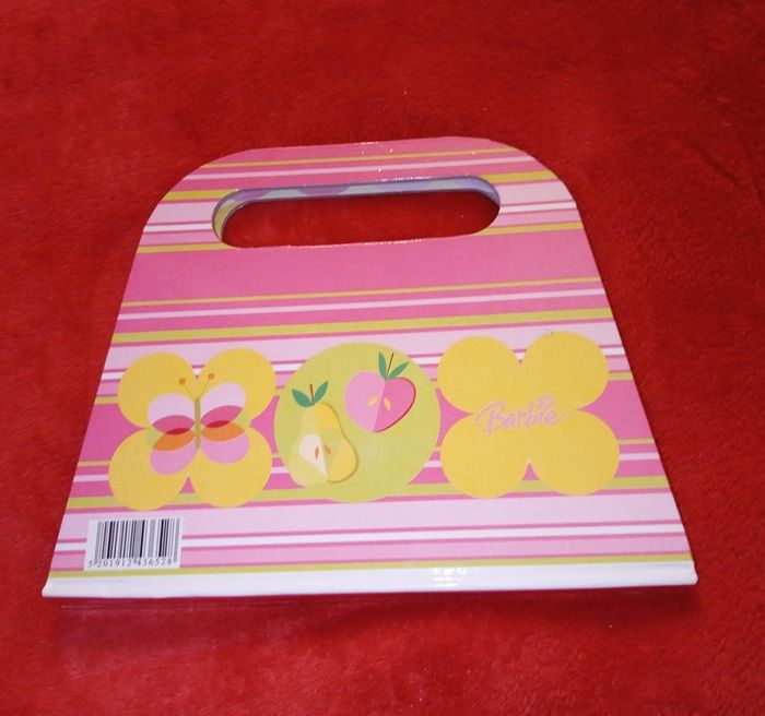 1 carnet en forme de sac + des crayon de couleur rose Barbie Mariposa