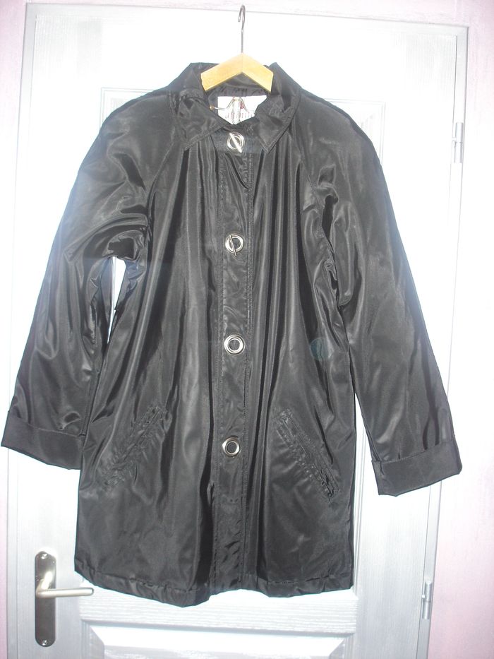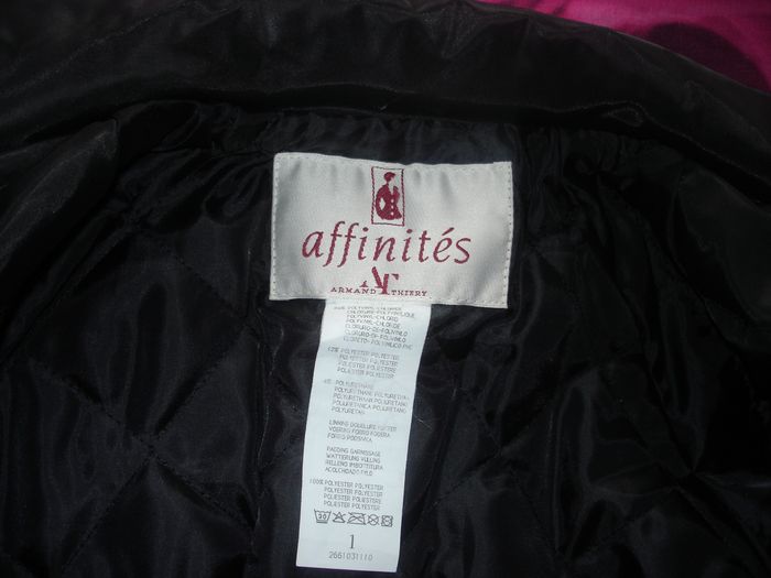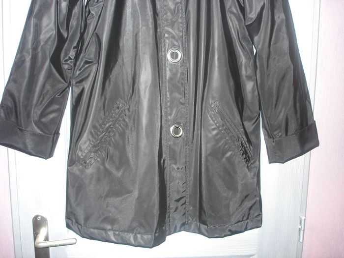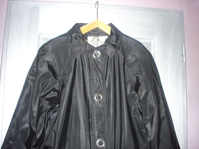 Ravissant Manteau/Trench Taille 1 "Affinités" par Armand Thierry MANTEAU élégant, dans l'air du temps Couleur: Noir uni Forme habillée, Style classe Fermeture sur le devant 1 poche de chaque côté Manteau/Trench imperméable sans capuche Dimensions: Longueur 81cm - Longueur manches 64,5cm - épaule à épaule 45cm Matières: 100% Polyester (intérieur assez chaud) Manteau/Trench comme Neuf, porté 2 fois