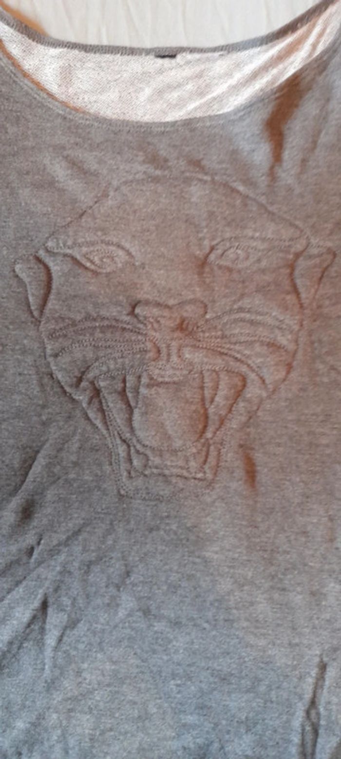 Super sweat sympas avec tête de tigre en relief Manche 3/4 Gris foncé