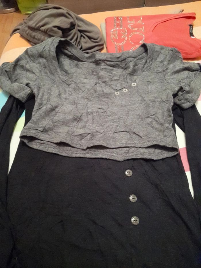 Haut manches longue noir femme,avec Haut court plus chaud à enfiler par dessus Très bon état