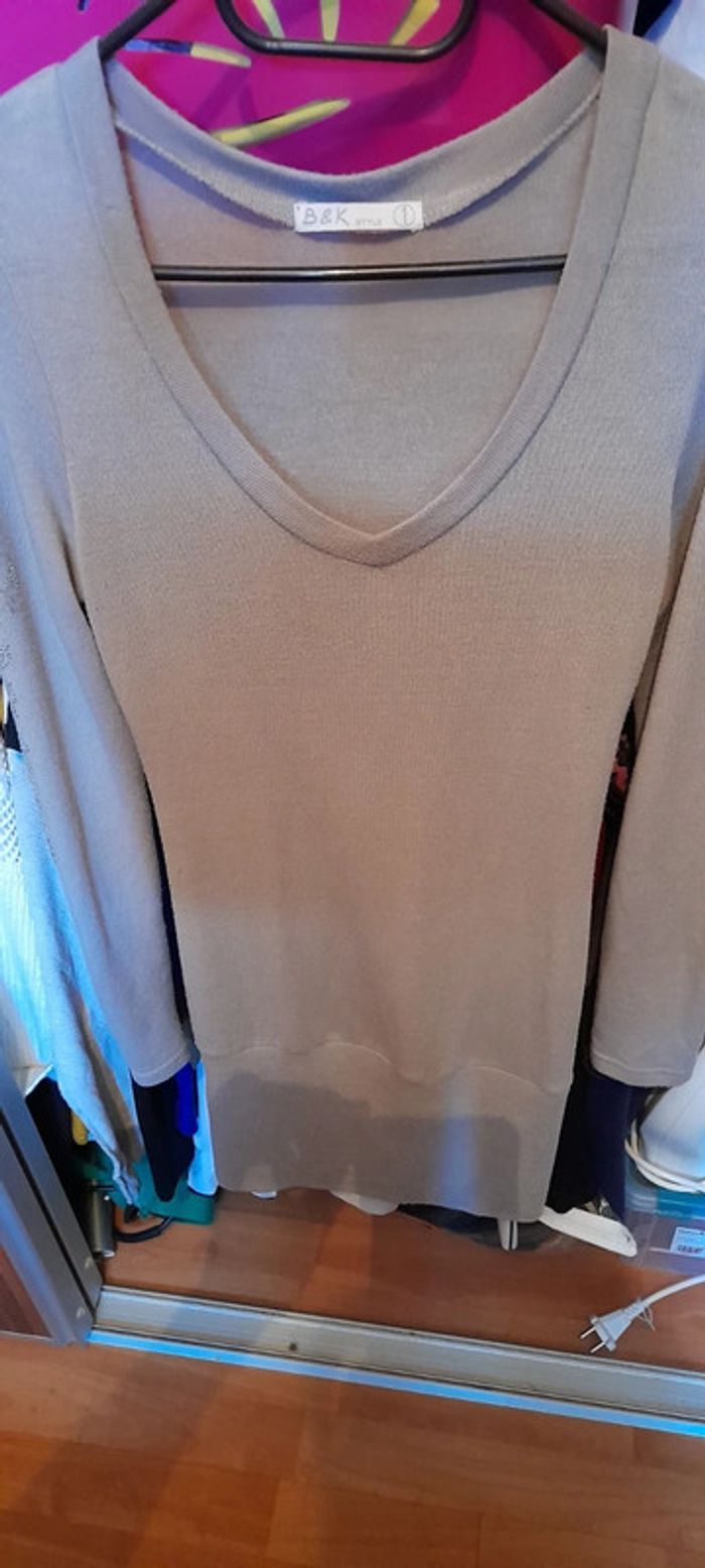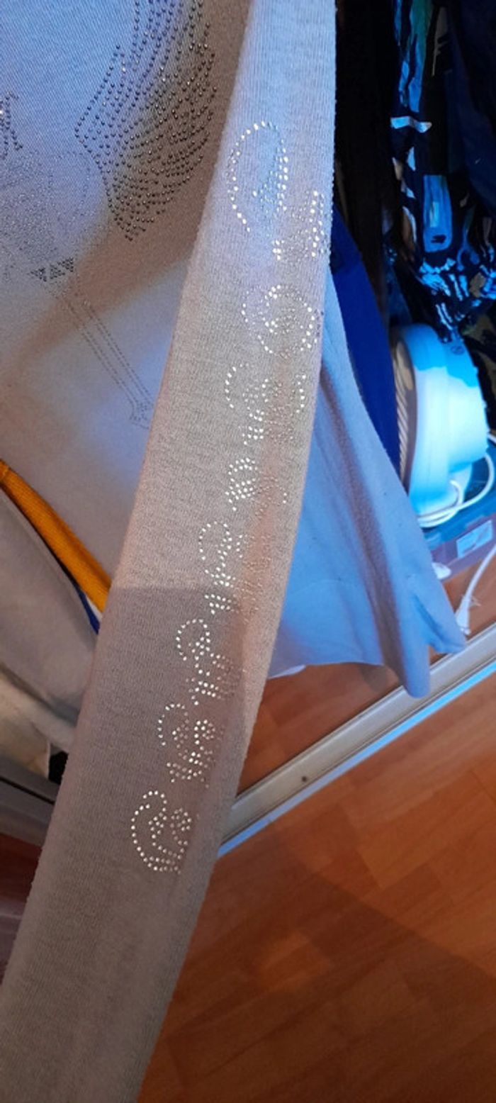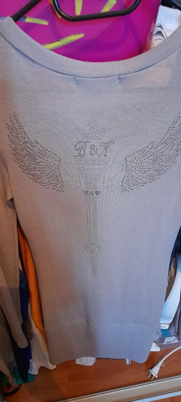 Robe tunique chaude ,près du corps Peu porté, mais bouloche un peu Beau dessin en strass derrière et sur la manche