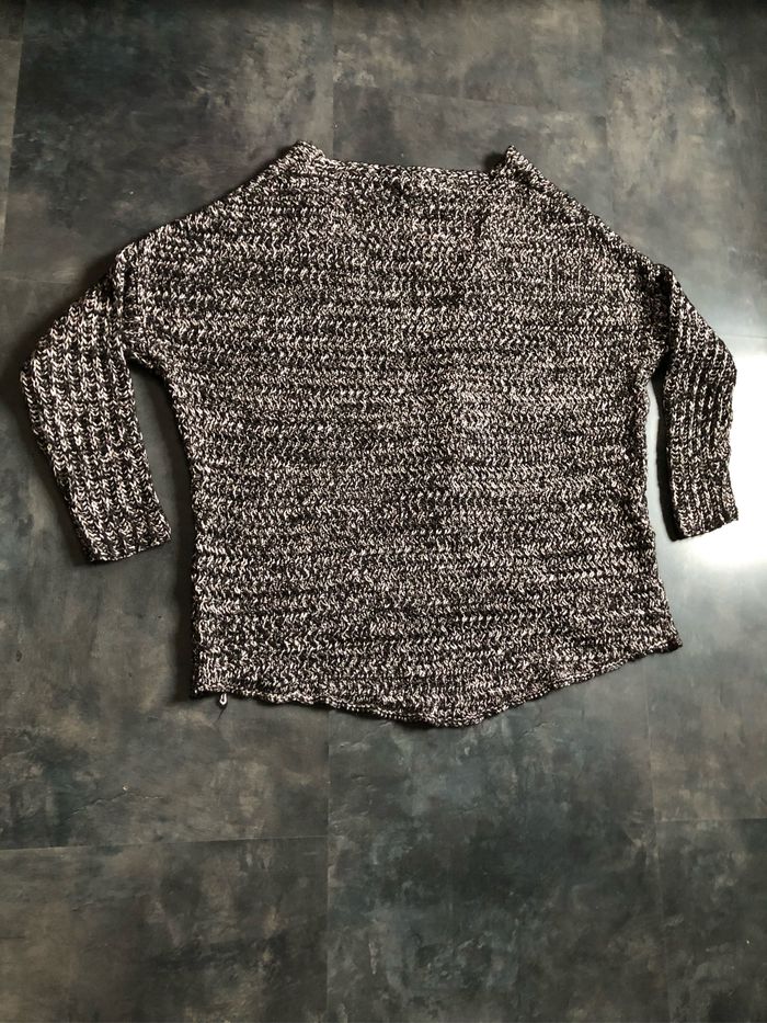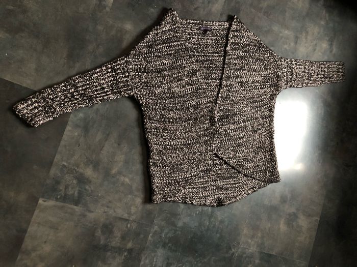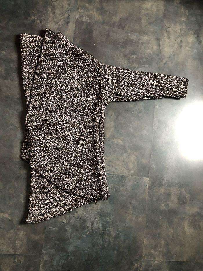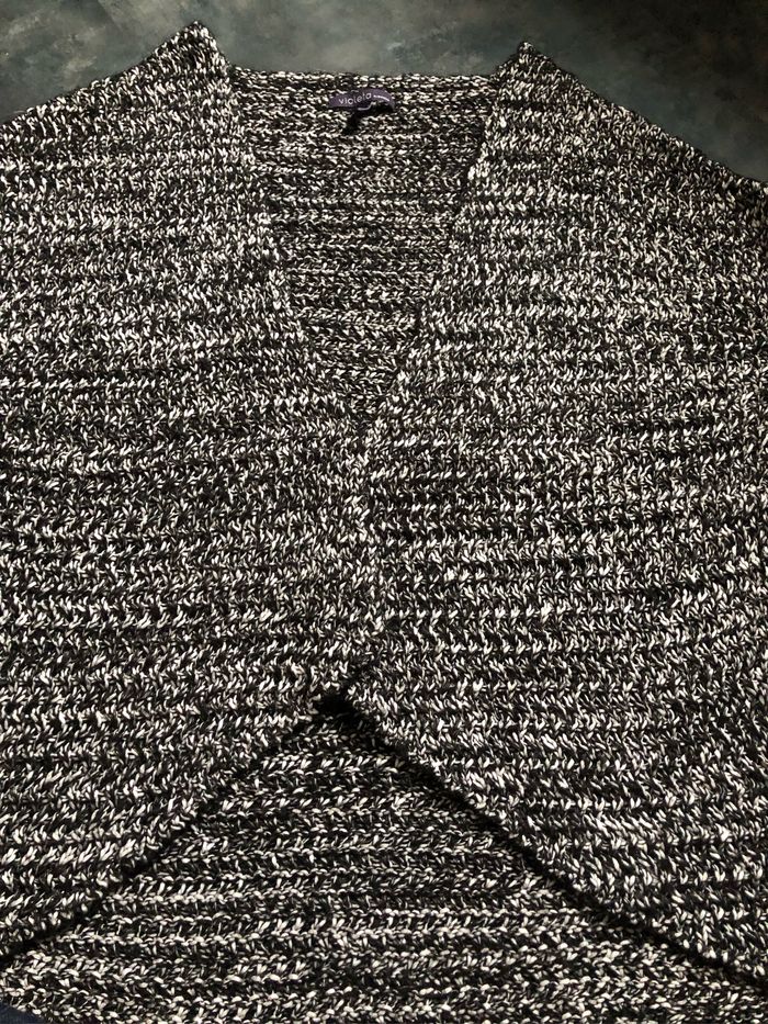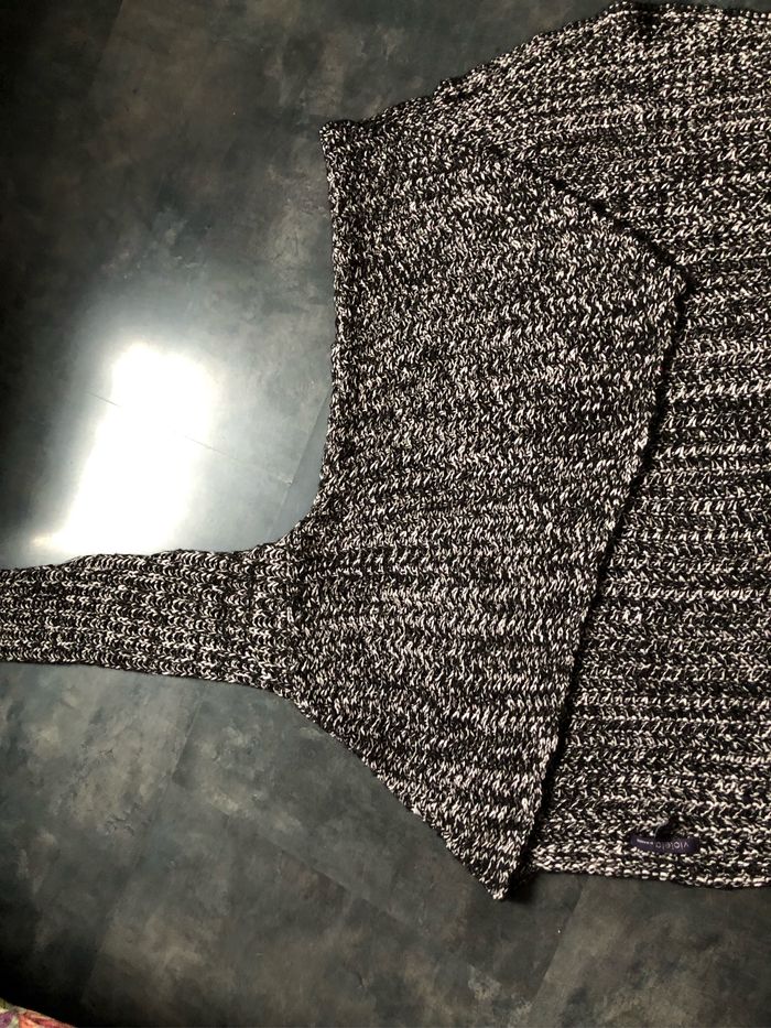 Magnifique gilet noir et blanc chiné doré Forme asymétrique Taille S Plus d’étiquette de composition car elle a été coupé Violeta by Mango Aisselle à aisselle 68 cm Longueur dessous de manche 41 cm Longueur dos 74 cm, plus court devant