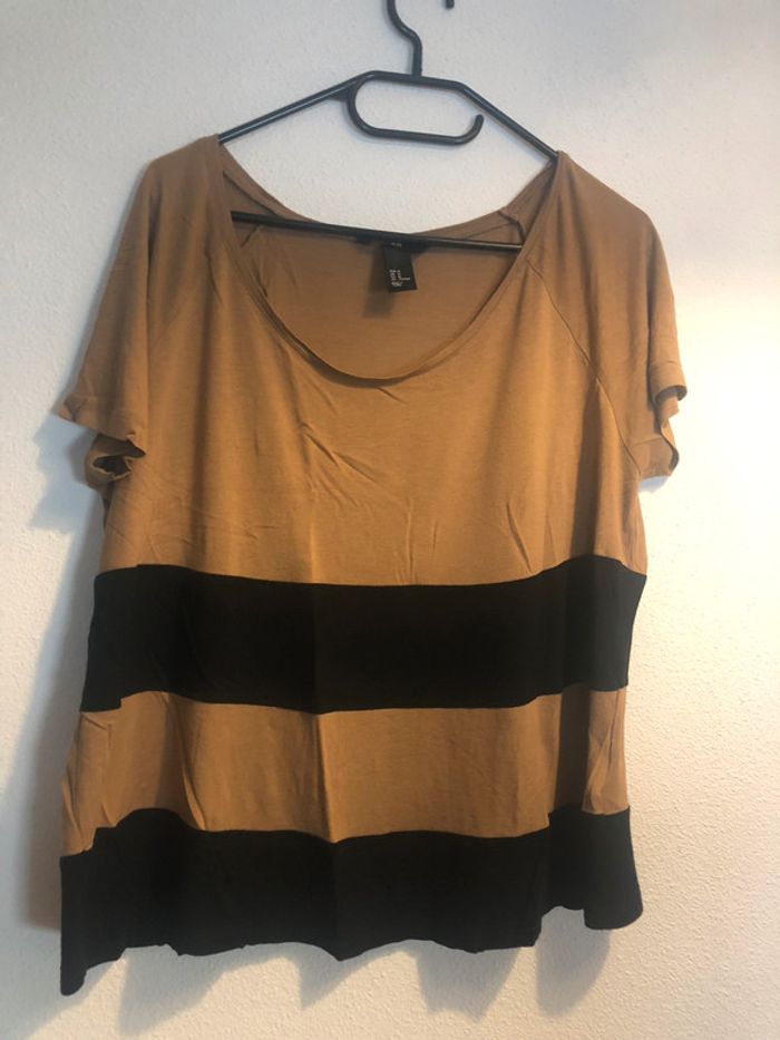 Tee-shirt H&M ample. Noir et beige foncé. Taille M #196