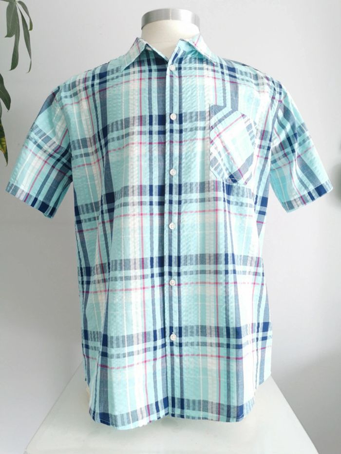 Chemise à carreaux turquoise effet gauffré Atlas for men Taille XL - photo numéro 1