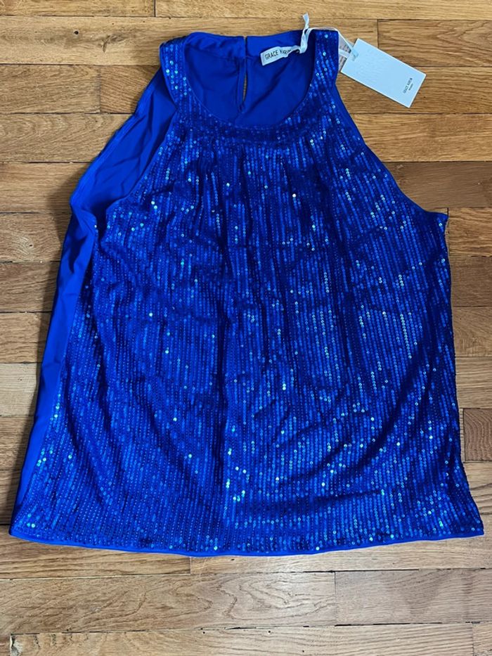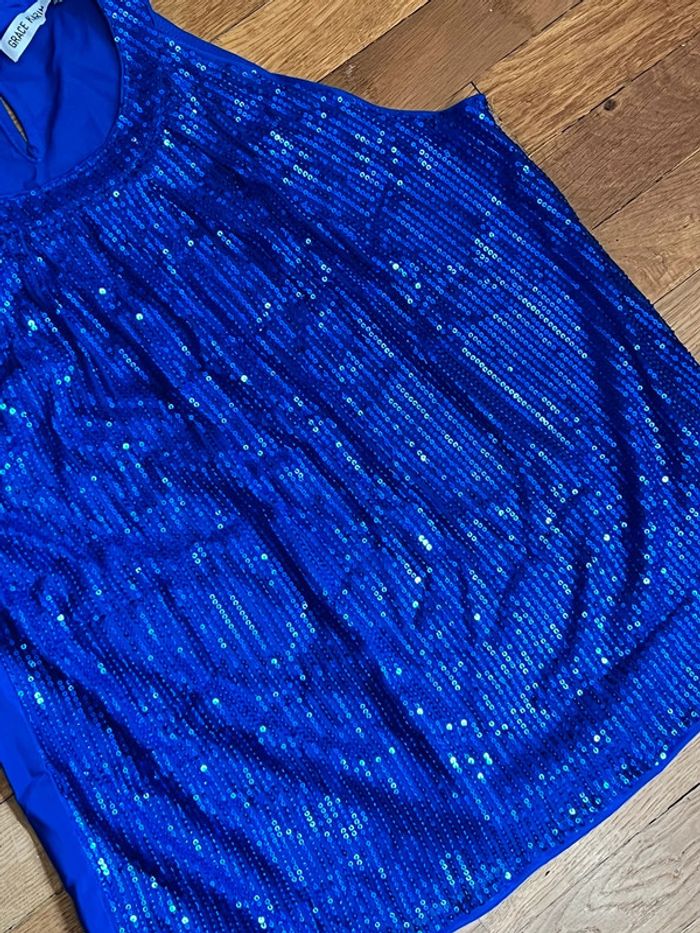 Débardeur bleu Paillette Taille L 59cm en bas 53cm sous les bras 64cm de hauteur #1494