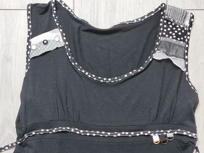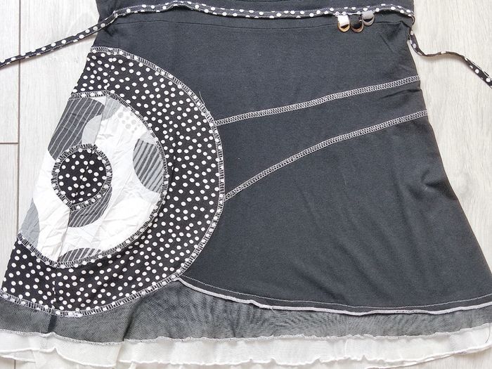 Coton avec élasthanne Liens se nouant à l'arrière Forme trapèze Rendez-vous possible sur Collégien (77090) ou Coulommiers (77120)