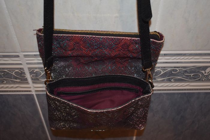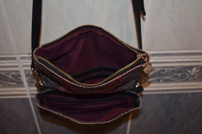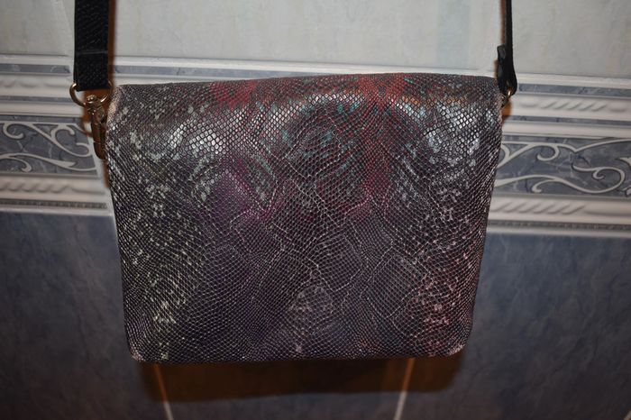 sac desigual à bandoulière, réglable 1 ouverture simple et 1 ouverture a zip à rabattre présente 1 petite usure dans un coin en bas ( voir dernière photo)