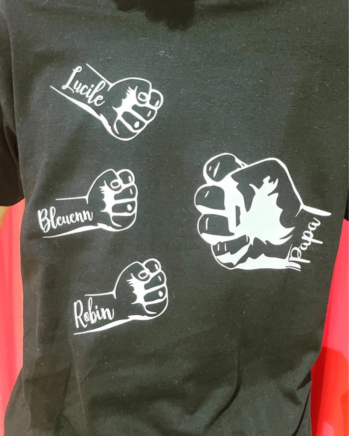 Tee-shirts fête des papas Tee-shirts noir / blanc / bleu marine plusieurs tailles disponibles Différentes couleurs de flocage rose bleu blanc rouge noir gris or violet etc…… Prix 18€ Envoie possible