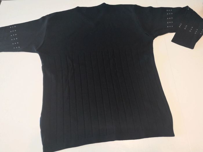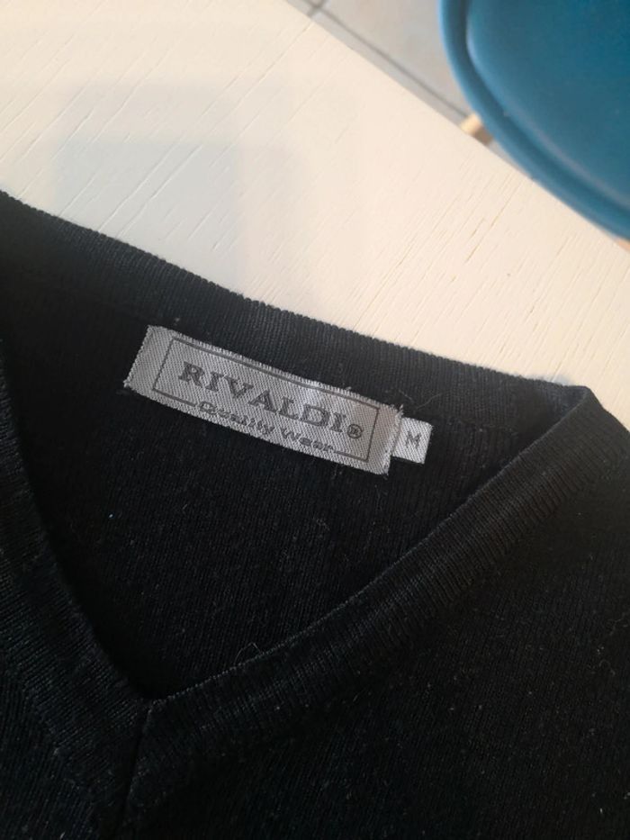 Pull homme Rivaldi, taille M, noir, col V, un petit trou sur une manche peu visible #homme #pull #hiver #automne #laine #maille #noir #rivaldi