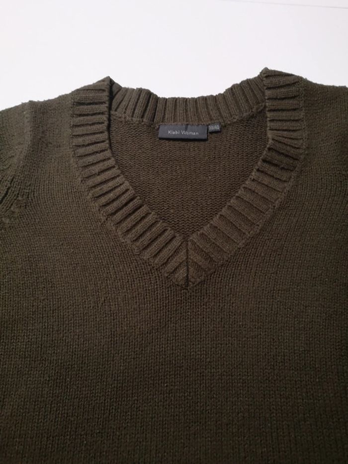 Pull femme, taille 38, en maille, marron, col V, manches longues, longueur 58cm environ Très bon état #femme #haut #pull #hiver #automne #laine #maille #kiabi #taille38 #colv #chaud