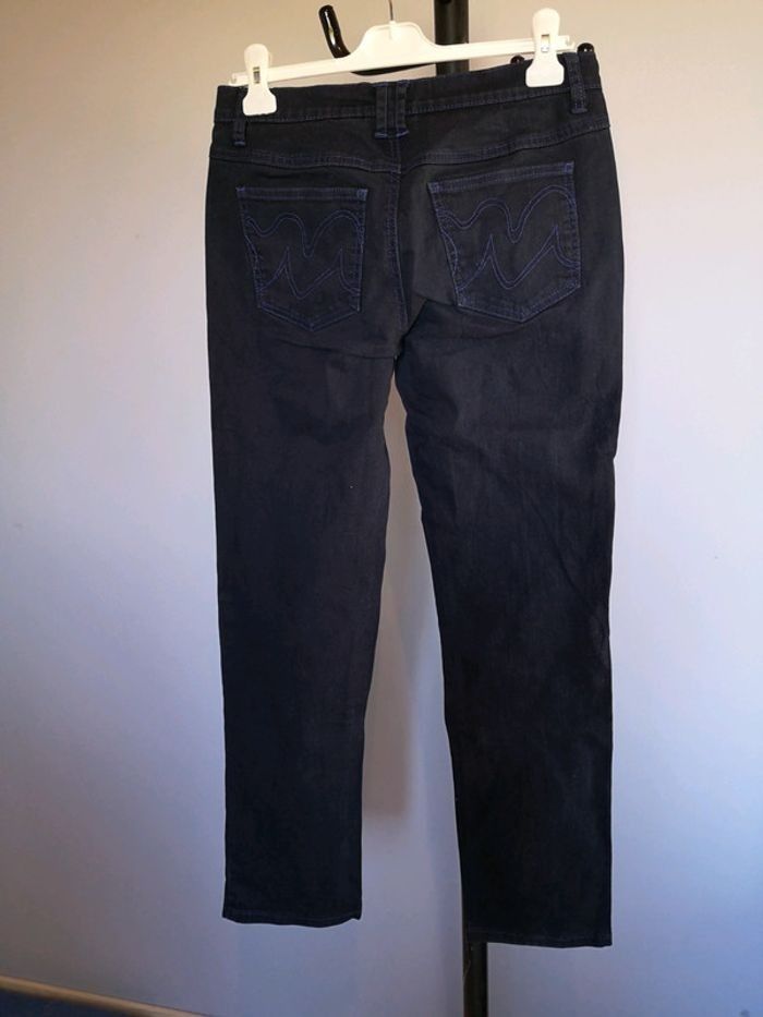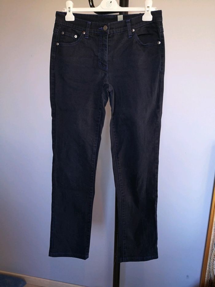 Jean femme, bleu marine, coutures contrastées bleues, taille 38, coupe droite, fermeture par zip et bouton Très bon état #femme #pantalon #bas #jean #jeans #denim #couleur #droit #regular #bonprix #taille38