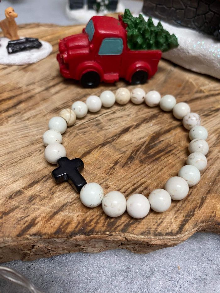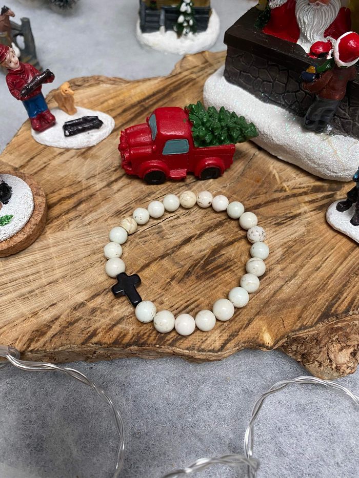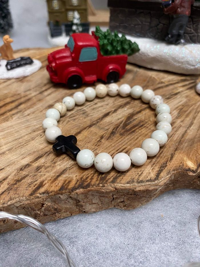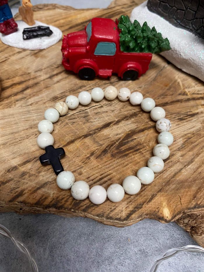 Bracelet en magnesite et croix , lithothérapie - photo numéro 1