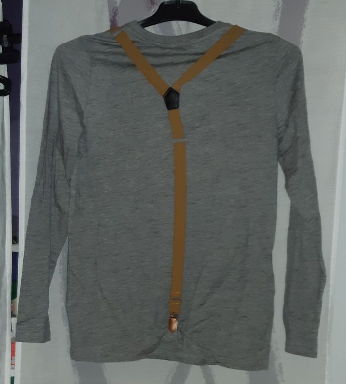 Tee-shirt garçon manches longues avec bretelles Taille 12 ans JBC Gris Les bretelles peuvent se retirer Neuf avec étiquette