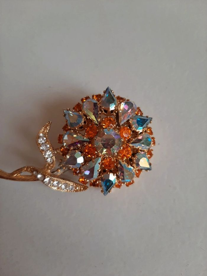 Broche cristaux 6cm orangé - photo numéro 3