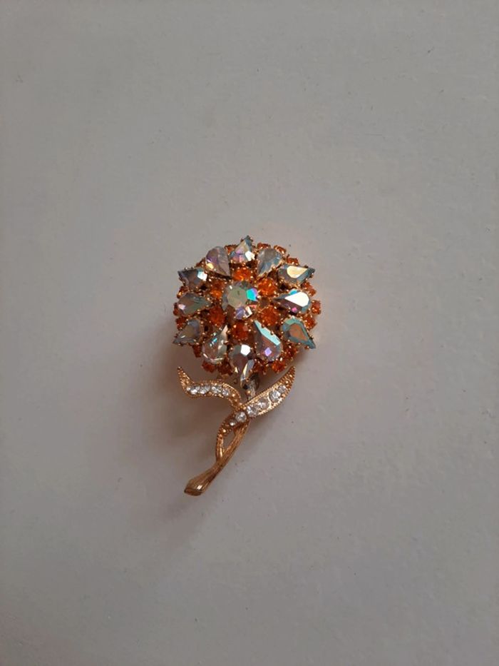 Broche cristaux 6cm orangé - photo numéro 2