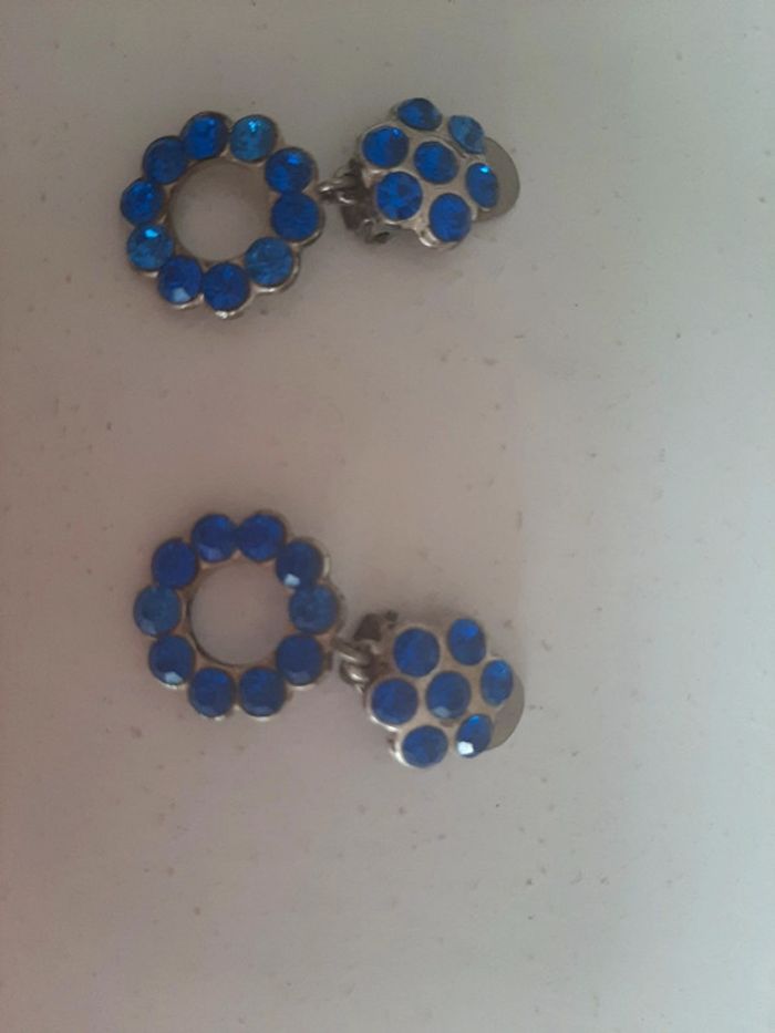 Paire de boucles d oreilles brillants bleus 3cm long - photo numéro 2