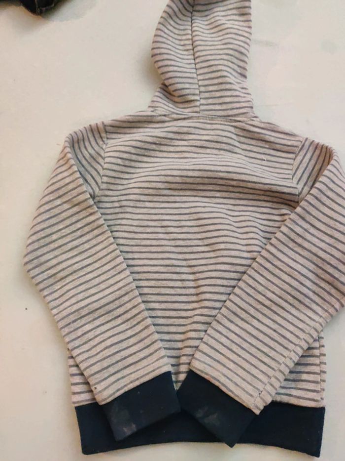 Pull à capuche gris Tailles voir photos Traces d'usures au bout des manches Bon état