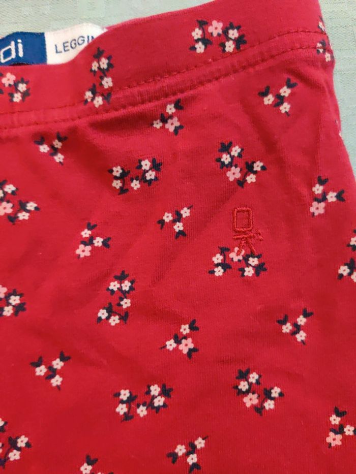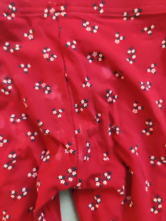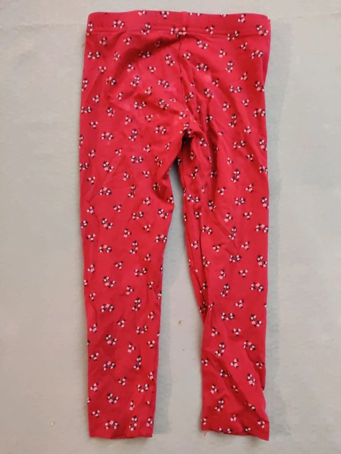 Legging rouge taille 4 ans / 104 cm Motif floral Petites zones plus claires au niveau des fesses (voir photo) Bon état