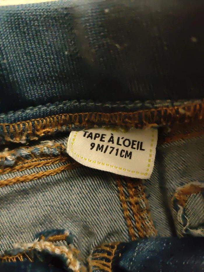 Jeans taille 9 mois Tape à l'oeil Jeans effet délavé Taille élastique Bouton à pression Très bon état