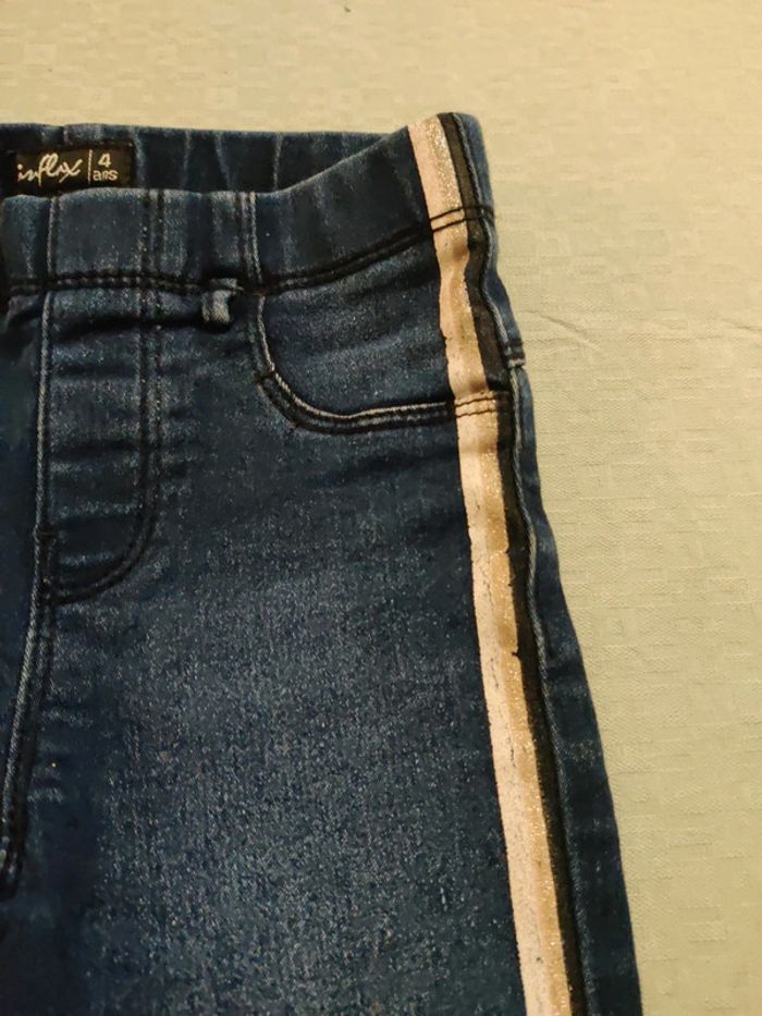 Jeans taille 4 ans Bordure paillettée Fausse poches Ceinture élastique Très bon état